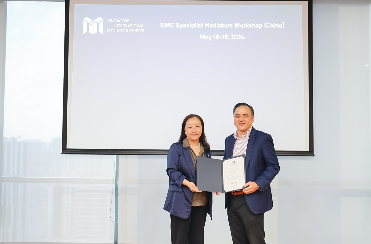 The Singapore International Mediation Centre (SIMC) hosted its first China Specialist Mediators' Workshop (SMW) for 2024 in Shanghai, from May 18-19, 2024. The workshop was jointly organized with the Shanghai International Arbitration Center (SHIAC) and was conducted at the elegantly furnished office of SHIAC, which overlooks the beautiful new Pudong area.